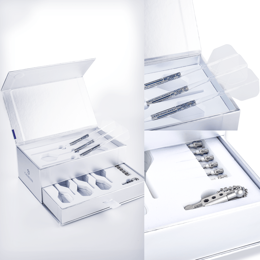 Caliburn Starships Darts - Steel Tip - 95% Tungsten - Demeter - 23g. Each pack contains 95% tungsten barrels fitted with Caliburn replaceable points, stems and flights. Thread: 2ba Supplied fitted with the Caliburn Replaceable Point System.