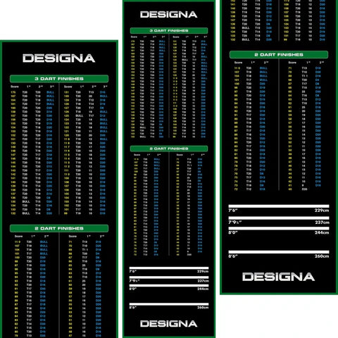 Designa Checkouts Carpet Dart Mat - Blue. Quality carpet dart mat with rubber non slip back underlay. Official tournament specification oche measurements. Versatile, lightweight, easy to roll up and store away. Size: 290cm xx 60cm.