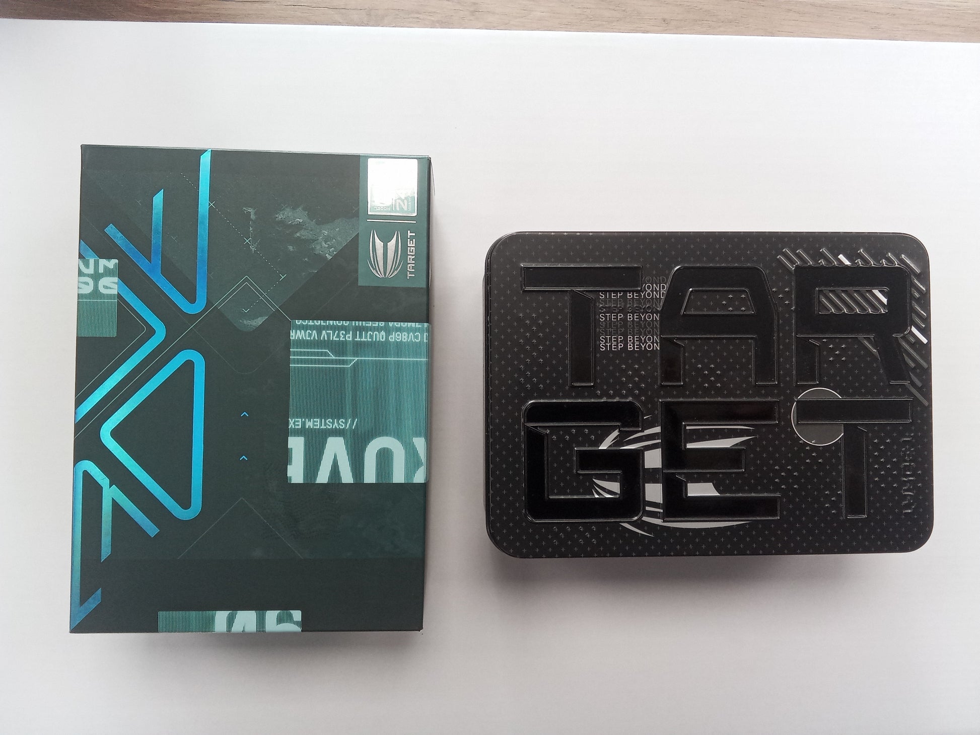 The dart set is presented in a sleek, black Target Darts tin storage. Designed for both style and functionality, the tin securely stores your darts and accessories, keeping everything organized and protected in one place.